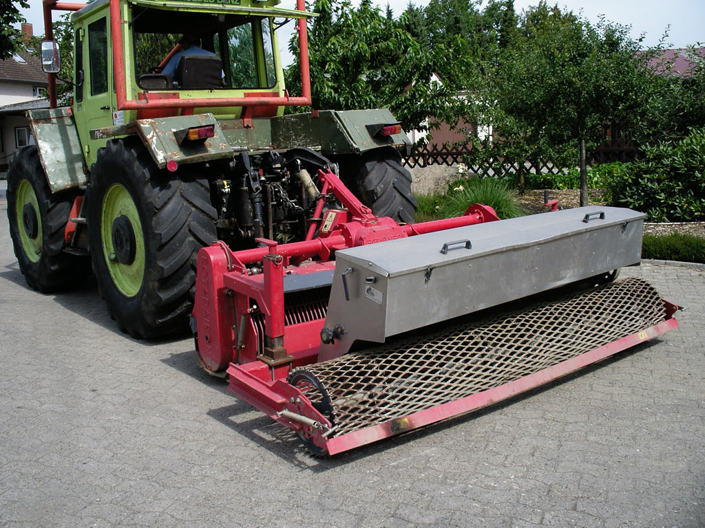 Mit der Umkehrfräse wird in einem Arbeitsgang der Boden bis 22 cm tief und einer Arbeitsbreite von 2,20 m aufgefräst, gemischt, mit einem Egalisierer geglättet, Gras gesät, angewalzt und Steine bis 15 cm eingearbeitet.